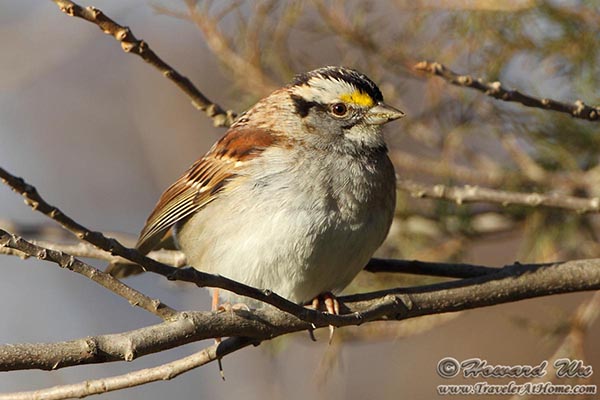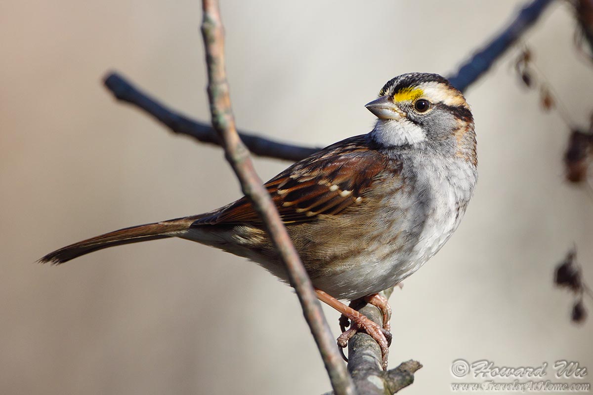 To me White-throated Sparrows (along with Dark-eyed Juncos) are the quintessential winter birds in our region. Their arrival from the far-north announced the beginning of the cold months, which, without their whistling "old-sam-peabody" songs I don't know how I can get through; their departure in early spring draws the curtain for the appearance of neotropical migrants. (Click on each image to see the high-resolution version)